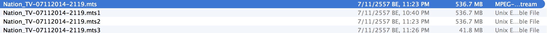 สอบถามผู้รู้หน่อยครับในการบันทึกรายการทีวี (รายละเอียดตามภาพ capture ) หลังจากบันทึกรายการทีวีที่ 536.7 MB แล้วไฟล์จะถูกแบ่งเป็นนามสกุลUnix Executable File ซึ่งไม่สามารถดูได้ ท่านผู้รู้พอมีข้อแนะนำใดบ