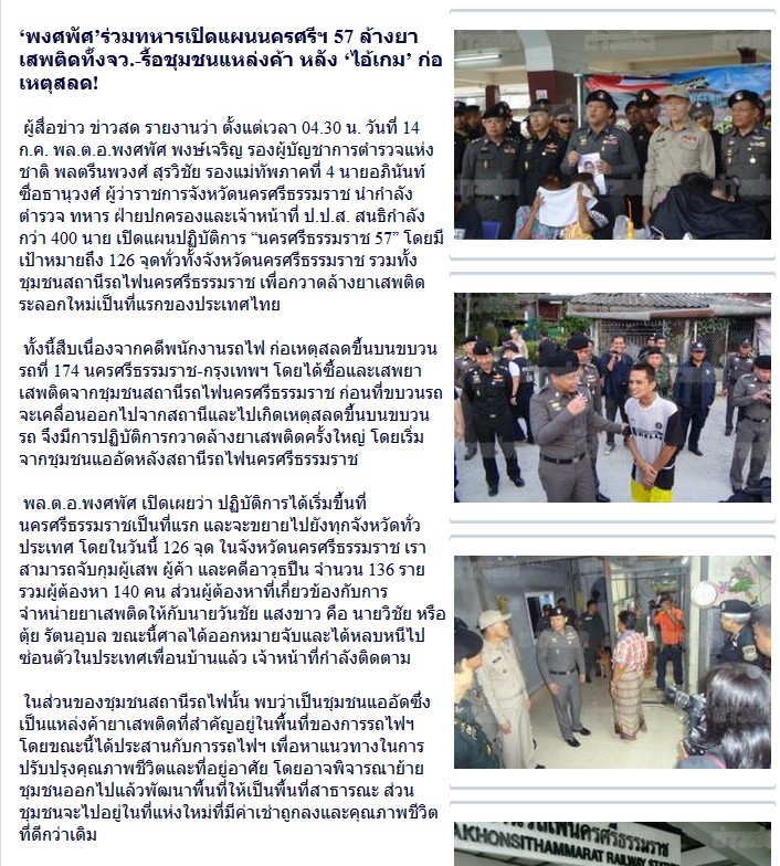 ‘พงศพัศ’ร่วมทหารเปิดแผนนครศรีฯ 57 ล้างยาเสพติดทั้งจว.-รื้อชุมชนแหล่งค้า หลัง ‘ไอ้เกม’ ก่อเหตุสลด!
