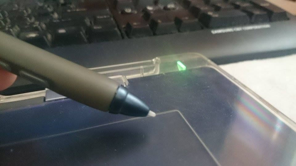 จากรูปนี้คือเวลาที่ยังไม่ได้จิ้มตัวปากกาลงไปนะครับ มันจะเป็นไฟสีฟ้า