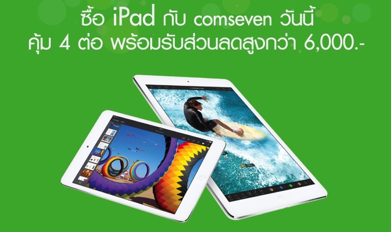 โปรโมชั่นสุด Happy ด้วย iPad กับข้อเสนอสุดพิเศษ 4 ต่อ ที่คุ้มกว่าใคร พร้อมส่วนลดรวมสูงสุดกว่า 6,000 บาท เมื่อซื้อ iPad ที่ iStudio iBeat U.Store by comseven เริ่มแล้ววันนี้ – 31 กรกฏาคม 2557