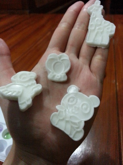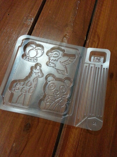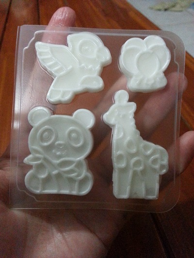 พิมพ์ใส่ขนมค่ะ แล้วก็ช้อนกับไม้พาย(เรียกอะไรดีหว่า) นั่นแหละค่ะเอามาระบายๆสีลงไป เราก็เอากรรไกรตัดแยกส่วนมันออก