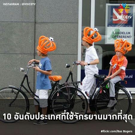 อันดับ1 ประเทศเนเธอร์แลนด์ มีประชากร 16.6 ล้านคน มีจักรยาน 16.5 ล้านคัน คิดเป็นร้อยละ 99.1