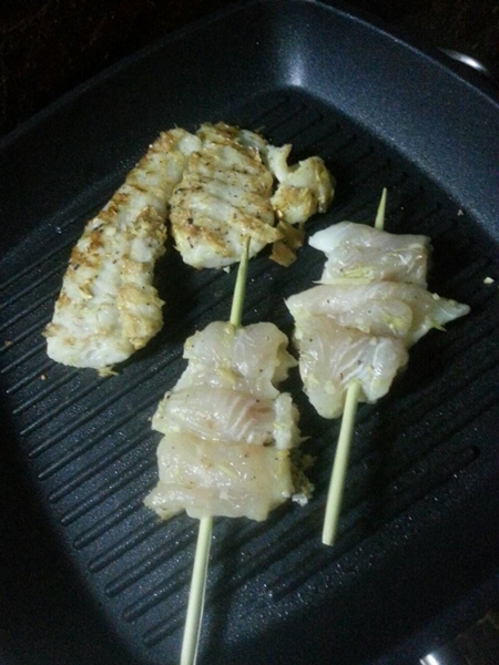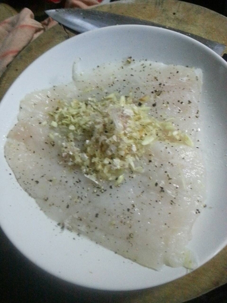 - เนื้อปลาดอลลี่ ผมแล่ให้เป็นชิ้นแบบยาวๆ เพราะผมจะเอามาม้วนแล้วเสียบด้วยตะไคร้แล้วย่างครับ