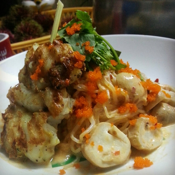 เลยได้ออกมาเป็น "เส้นบุกผัดครีมต้มยำ กินคู่กับ ดอลลี่ย่างตะไคร้" ครับ ดูชื่ออาจจะเหมือนทำยากแต่ไม่ยากอย่างที่คิดครับ