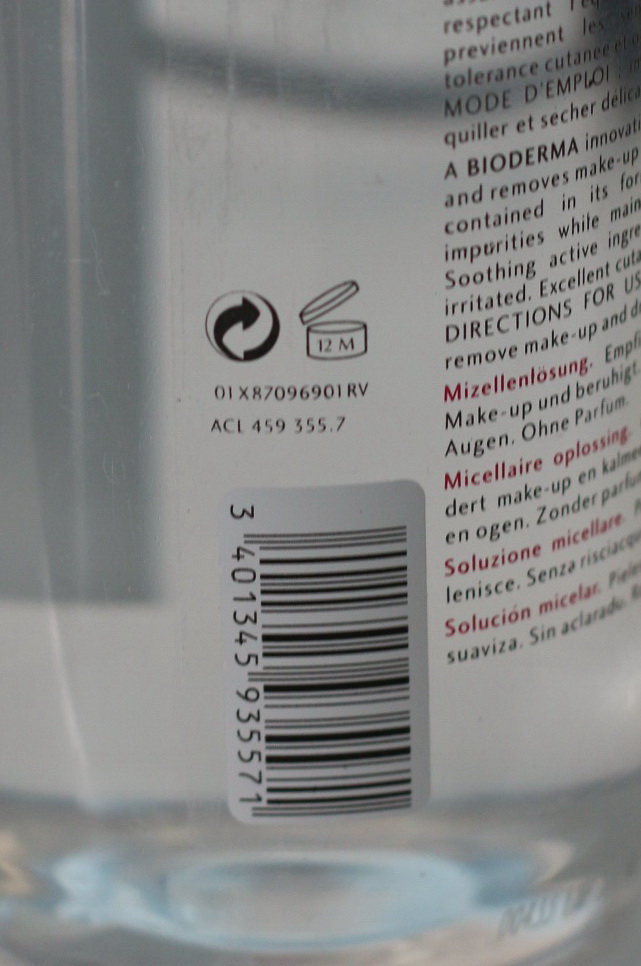 ฉลากด้านหน้า เราอ่านจากเน็ตเขาบอกว่าถ้าส่องกะไฟแล้วใช้เล็บขูดจะไม่เป็นรอย แต่อันนี้เป็นรอยค่ะ และฉลากมันไม่เงาเหมือนที่เราซื้อจากวัตสัน แถมมีรอยย่นด้วย ตรงคำว่า SOLUTION MICELLAIRE