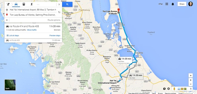 สำนักสงฆ์ต้นเลียบ ตั้งอยู่ที่ อ. สทิงพระ จ.สงขลา เป็นบ้านเกิดและสถานที่ฝังรกของหลวงปู่ทวดเหยียบน้ำทะเลจืด การเดินทางมาสำนักสงฆ์แห่งนี้ส่วนใหญ่แล้วจะเป็นการเดินทางมาด้วยรถส่วนตัว เพราะเดินทางยังไม่สะดวกสบายเท่าที่ควรเพราะอยู่นอกเมือง แต่ก็มีรถประจำทางอยู่เกือบทุก 30 นาที สามารถเลือกเดินทางได้ทั้งรถเมล์ สาย ระโนด-สงขลา, ระโนด-หาดใหญ่, นครศรีธรรมราช-สงขลา, นครศรีธรรมราช-หาดใหญ่ หรือแม้กระทั่ง เกาะสมุย-สงขลา โดยจุดเริ่มต้นคือ ขสมก-หาดใหญ่ หรือ ขสมก-สงขลานั่นเอง แต่ถ้าหากต้องการความรวดเร็วก็จะมีรถตู้บริการเช่นกัน สามารถสอบถามได้ที่ขนส่ง นอกจากนั้นก็ยังมีรถสองแถวบริการตลอดสาย ข้อดีคือสามารถบอกกระเป๋สรถเมล์ว่าลงสำนักสงฆ์ค้นเลียบได้เลย เพราะส่วนใหญ่แล้วรถเมล์ต่างจังหวัดจะใจดี จอดนอกป้ายให้