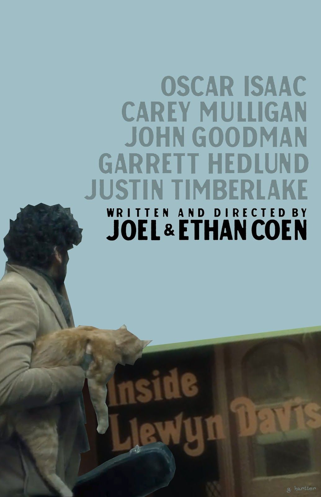 ชื่อหนังก็บอกเรากลายๆอยู่แล้วว่าเป็นเรื่องราวของชายคนหนึ่งชื่อ ลิวอิน เดวิส ภาพหน้าปกก็พอจะบอกเราได้ว่าเขาคงเป็นนักร้องดนตรีพื้นบ้านอเมริกันจำพวกเพลงโฟล์ค มือซ้ายของเขาแบกเครื่องมือทำมาหากินคู่กาย นั่นคือกีต้าร์คู่ใจ แต่สิ่งที่ผิดหูผิดตาไปคงเป็นเพราะในมือขวาของเขาที่ถือแมวตัวหนึ่งเอาไว้