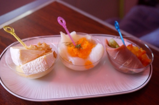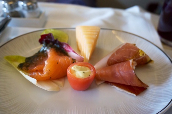 มาต่อกันที่อาหารบนเครื่องบิน ชอบมากๆเพราะแย้เป็นคนชอบกินชีส พาร์มาแฮม ที่ชอบมากก็คือที่เป็นชีสแล้วโรยด้วยหอมเจียว อีกจานก็คือแซลมอนรมควัน