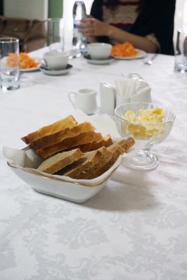 แต่ที่รัสเซียไม่ค่อยหวือหวา เวอร์วังอลังการเท่าไหร่ แล้วเวลาที่ทานอาหาร Traditional food ของที่นี่ เค้าก็จะมีขนมปัง 2 สีแบบนี้ทุกร้าน รสชาติก็ไม่เอาไหนเลยค่ะ แล้วก็มีเนยมาให้ ก็ไม่ได้กินเพราะลองชิมขนมปังแล้วมันแข็งมาก ชิ้นสีน้ำตาลเข้มจะเปรี้ยวเป็นพิเศษ มันไม่ค่อยโอเคคค แล้วก็เย็นชืดอีกต่างหาก