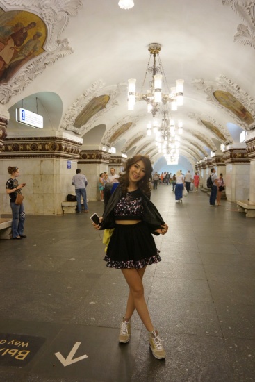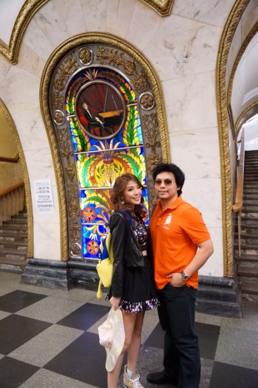 และนี่ก็เป็นจุดเด่นนึงของประเทศรัสเซียกรุงมอสโคว์ก็คือ รถไฟฟ้าใต้ดินของเค้าก็จะมีการออกแบบ ตกแต่งภายในที่ไม่เหมือนกันเรียกได้ว่าโดยสิ้นเชิงเลยดีกว่า สถานีแรกที่แย้ไปอย่าถามชื่อสถานีเพราะจำไม่ได้จ้า ก็จะเป็นตกแต่งด้วยกระจกสีต่างๆ สถานีที่ 2 ก็ตกแต่งด้วยโมเสค