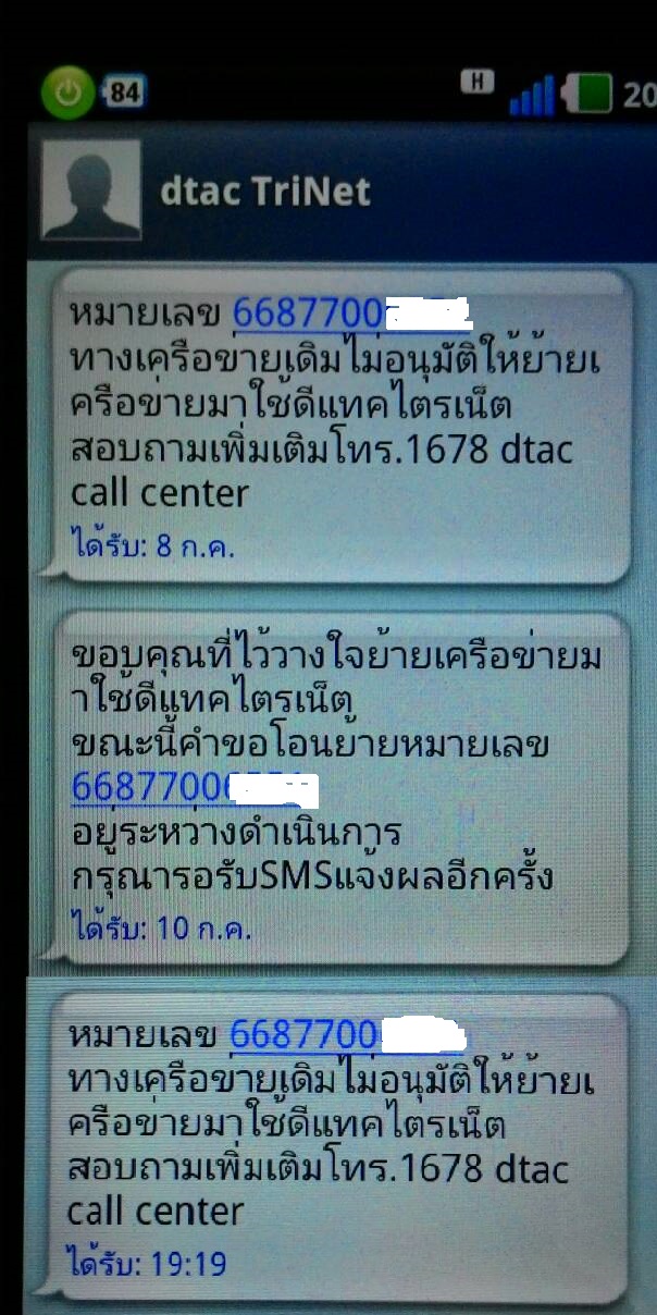 มีปัญหาเรื่องการย้ายค่ายจาก ais ไป dtac CC ช่วยเข้ามาตอบหน่อยครับ