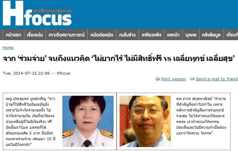 ประเด็นร่วมจ่ายคงไม่จบง่ายๆแม้ปลัด สธ.จะออกมายืนยันว่าไม่มีแนวความคิดนี้ แต่บรรดาคนรอบข้างต่างออกมาขานรับกันถ้วนหน้าว่าไม่จนไม่มีสิทธิ์ ความคิดที่ผ่านออกมาจาก ประธานสมาพันธ์ มันสื่ออะไรเป็นนัยยะว่าคนกลุ่มนี้คิดอะไรอยู่ มากกว่าที่เราๆท่านๆมองเห็น การเปิดประเด็นเรื่องนี้มิใช่การทะเลาะเบาะแว้งแต่อย่างใด แต่เป็นโจทย์ที่ท้าทายสังคมว่าคิดเช่นไรกับระบบสุขภาพ หน่วยงานของรัฐทั้งสองหน่วยงาน ที่มีวิธีคิดคนละแบบอย่างสุดขั้ว สธ.เป็นระบบราชการที่เคยชินกับการใช้อำนาจ สั่งการ เป็นใหญ่ เป็นขาใหญ่ ต้องนั่งหัวโต๊ะจะเอาอะไรสั่งได้ เคยชินกับการใช้อำนาจ คน เงิน ของ อำนาจ แต่ สปสช.เป็นหน่วยงานเกิดใหม่ เพิ่งก่อตั้งมา10ปีเศษ คนส่วนใหญ่ก็มาจากกระทรวงสาธารณสุขนี่แหละ แต่คนเหล่านี้หัวก้าวหน้า ถือหลักว่าต้องไม่ใช้อำนาจแต่เป็นการประสานความร่วมมือ เลขา สปสช.ถูกออกแบบมาเป็น เลขา เหมือนเลขานุการ ดีๆนี่เอง ทำงานธุรการ โดยมีบอร์ด คลุมอีกทีหนึ่ง มี รมต.สธ.ประธาน และมีตัวแทนจากหลายภาคส่วนที่ทำงานด้านสุขภาพ รวมถึงประชาชน เวลาประชุม เลขา สปสช.เขาไม่ได้นั่งหัวโต๊ะ เขามีหน้าที่รายงานให้ กรรมการทราบและตัดสินใจ เมื่อบอร์ดตัดสินใจอย่างไรก็ปฏิบัติไปตามนั้น แต่ปลัดกระทรวง ยังมองว่า ตนเป็นผู้ยิ่งใหญ่ สัง่ นพ.สสจ. ผอ.รพ.ในกำกับ ซ้ายหันขวาหัน ได้ แต่ อำนาจยิ่งใช้มากยิ่งหมดไป การออกหนังสือห้าม ของ สธ.ไม่ให้ นพ.สสจ.และ ผอ.รพ.เข้าร่วมกับ สปสช.ถือเป็นการใช้อำนาจที่มิชอบ และไม่ก่อให้เกิดความร่วมมือในการทำงานเพื่อประชาชนแต่อย่างไร เรื่องนี้ยังคงต้องติดตามต่อไปครับพี่น้องทั้งหลาย แต่เรื่องยุ่งๆใน สธ.คงตามมาอีกมากครับ ถ้าปลัด สธ.นพ.ณรงค์ สหเมธาพัฒน์ ยังบริหารเชิงอำนาจนิยม
