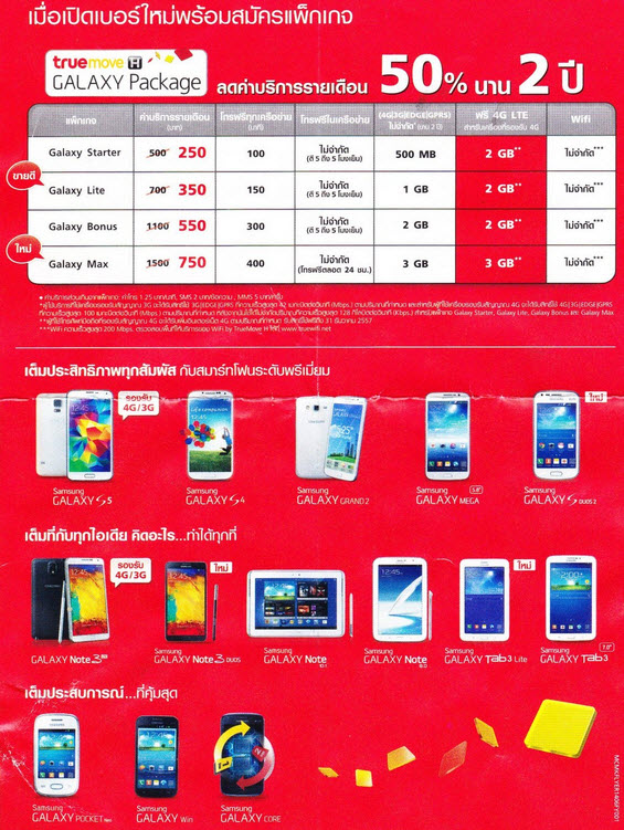 True แพคเกจ GalaxyS500 แถม 4G 2gb/เดือน ระวังได้แค่ 500 MB/เดือน