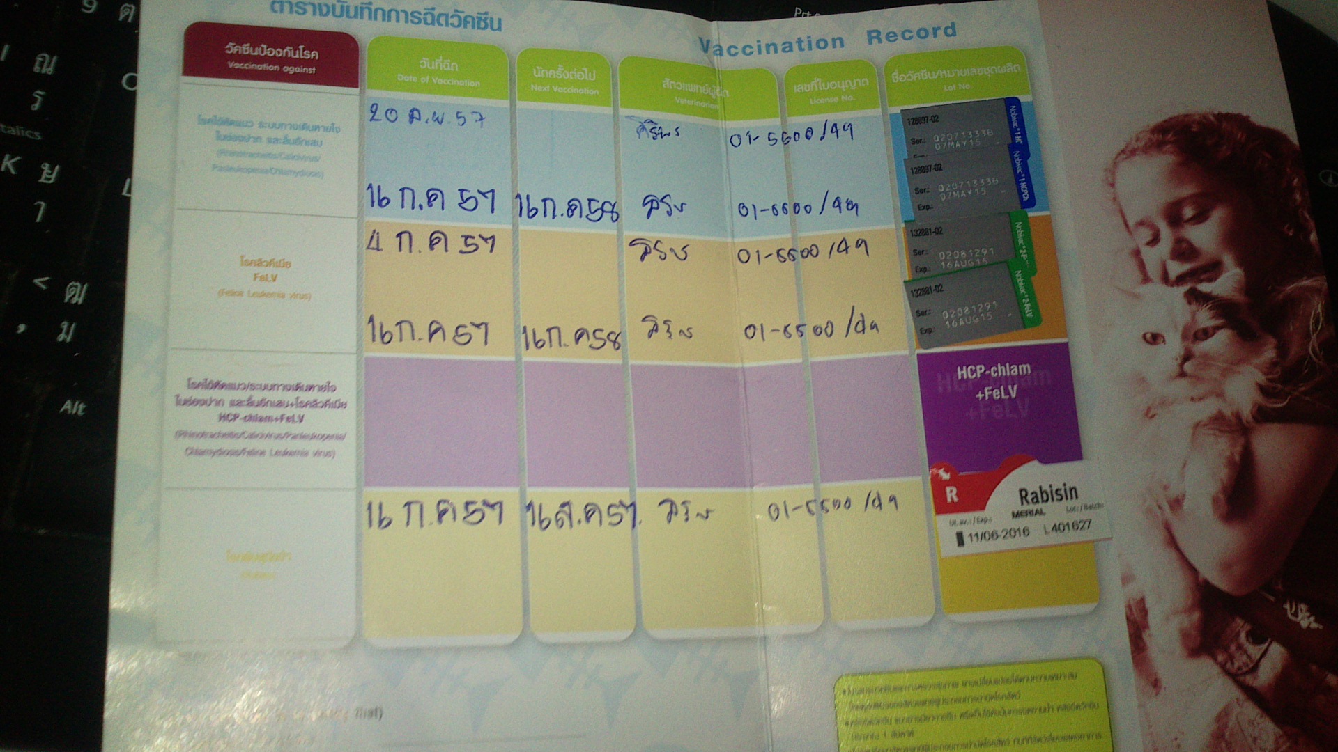 เมื่อวานวันศุกร์ที่ 1 มีนาคม มีเจ้าหน้าที่เทศบาลมาฉีดวัคซีนป้องกันพิษสุนัขบ้าให้ในชุมชน เราก็เอาหมาและแมวของเราไปฉีดอย่างละตัว ผ่านไปสัก 6 โมงเย็นน้องแมวเรามีอาการหายใจแรงๆทางปาก หลังกระตุก เลียที่หลั