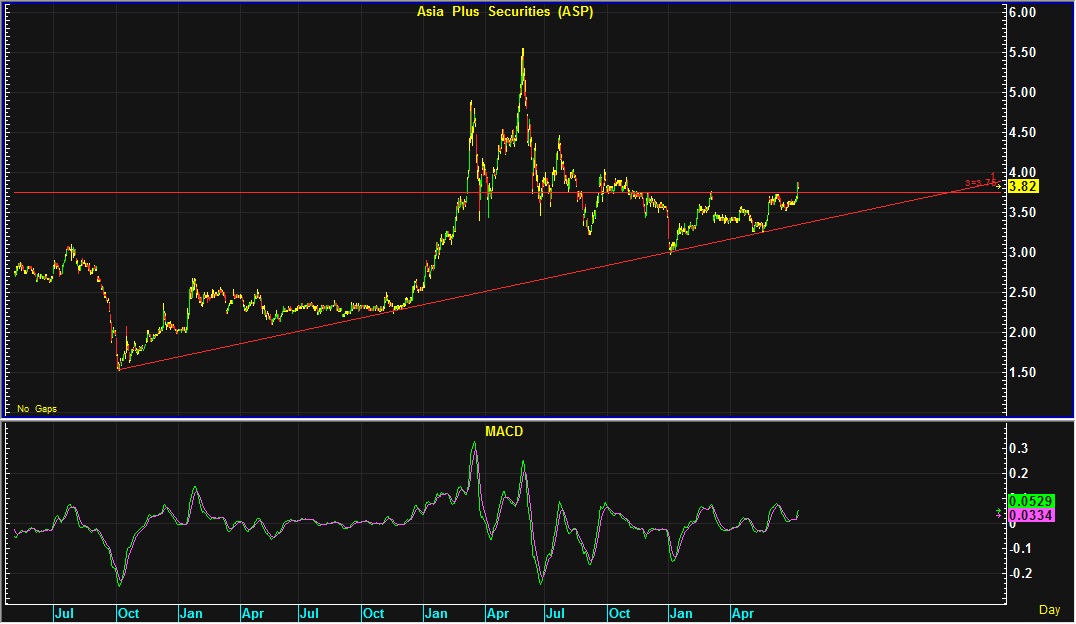ASP หุ้นพื้นฐานดี ปันผลสูง ประกอบกับงบในปีนี้ ออกมาดี เรามาทำการวิเคราะห์กราฟกัน - กราฟราคาสวย สามารถ break out trend line ออกไป เกิดแท่งเขียวที่ยาวพอสมควร ที่เบรกเทรนไลน์ได้ เมื่อ 2 วันก่อน ทำ highe