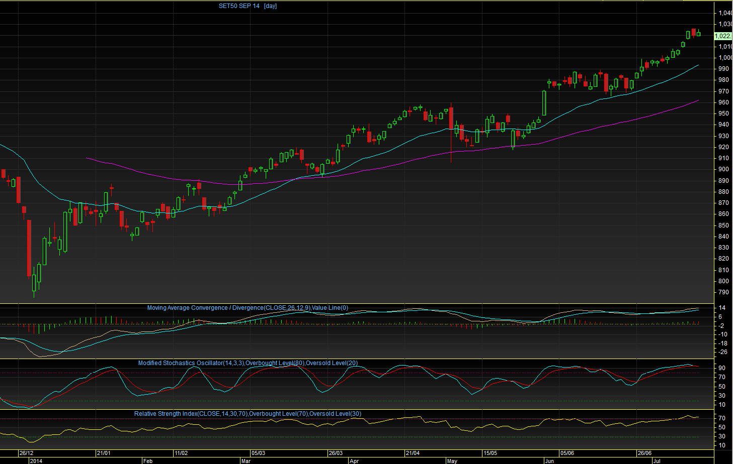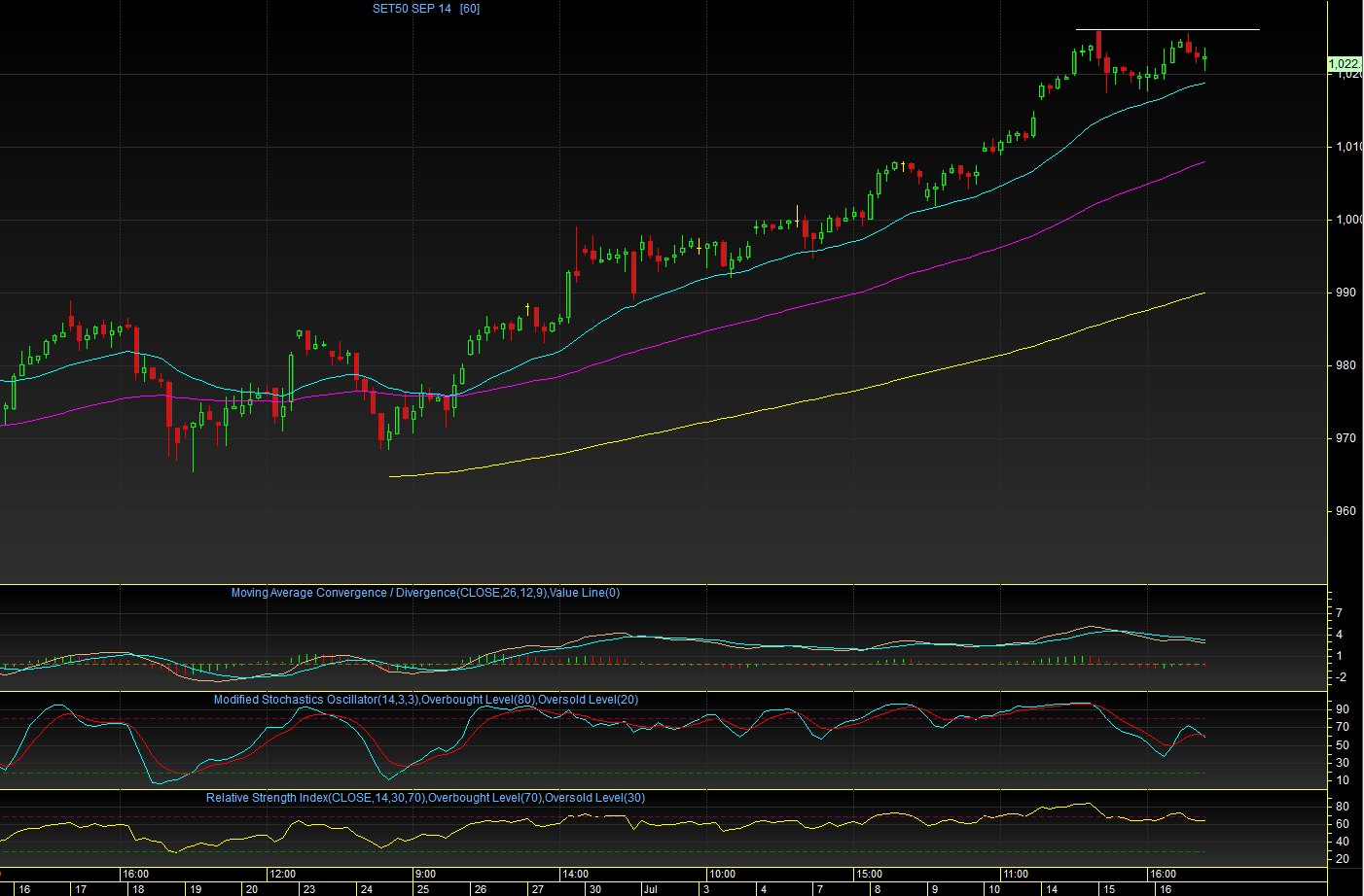 TF60 : เมื่อวานนี้มีความพยายามที่จะใต่ระดับขึ้นไป Test High เดิม (1025.9) แต่ก็ไม่สามารถผ่านขึ้นไปได้ จึงทำให้ช่วงท้ายตลาด