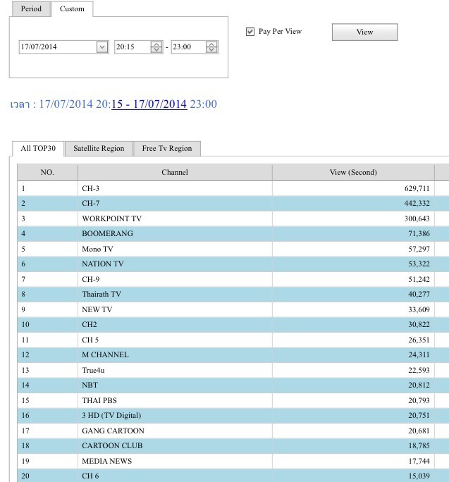 Real Time Rating FREE TV 27 ช่องของ AGB Nielsen (สัปดาห์ที่ผ่านมาทุกแพลตฟอร์ม,ทั่วประเทศ,กทม,หัวเมือง,นอกเมือง)