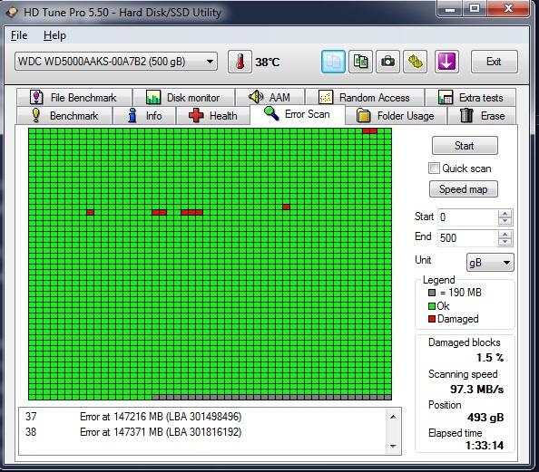 ใช้โปรแกรม HD tune ตรวจสอบฮาร์ดดิสก์ ผลออกมาเป็นแบบนี้คืออะไรครับ