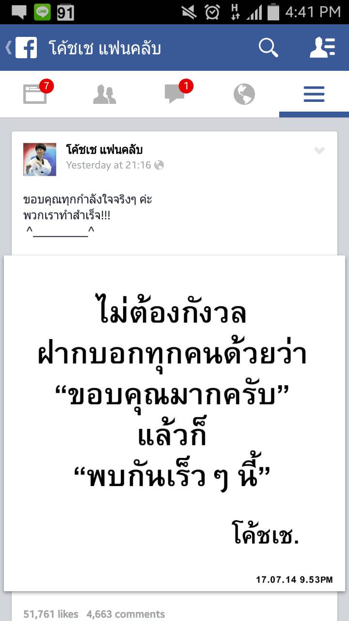 เพจโค้ชเช แฟนคลับ โพสเที่ยวบินที่โค้ชเชเดินทางกลับแล้ว