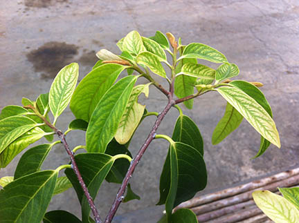 มีกิ่งและใบใหม่แตกออกมา แต่ทำไมใบใหม่ออกจะสีเหลือง ๆ ไม่เขียวสดทั้งใบเหมือนใบเดิมเลย