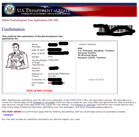 ผมได้เริ่มด้วยการกรอกข้อมูล DS-160 ครับ ซึ่งทางสถานทูตฯ เองได้ทำ