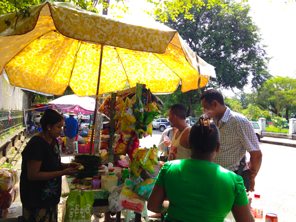 หลังจากเดินชมมหาเจดีย์ชเวดากองจนมืดค่ำ อิ่มเอมกับบรรยากาศแล้ว พวกเราก็ให้พี่แท็คซี่พาไปไชน่าทาวย์ ครับ ระหว่างขับรถไปพี่แท็คซี่ก็ขอแหวะ ซื้อหมากเป็นคำๆ ขายอยู่ข้างทาง คนก็ซื้อกันเยอะนะ เหมือนของกินเล่นบ้านเค้า