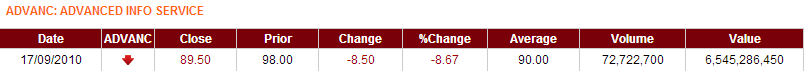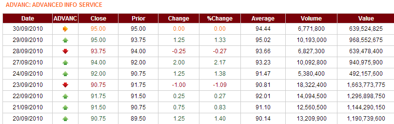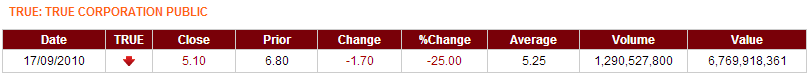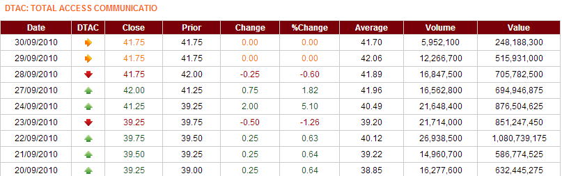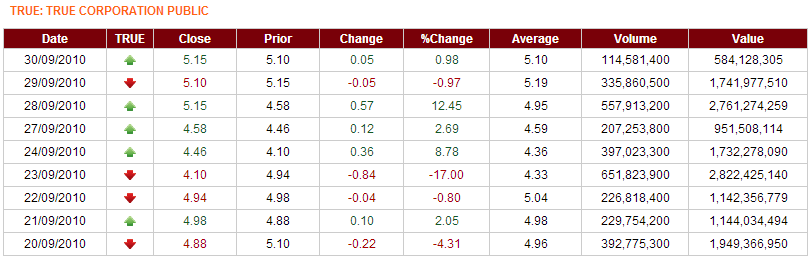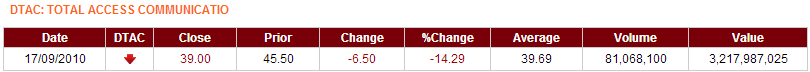 ย้อนอดีตราคาหุ้นสื่อสาร สมัยวันที่ศาลมีคำสั่งระงับประมูล 3G วันศุกร์ที่ 17 ก.ย. 2553