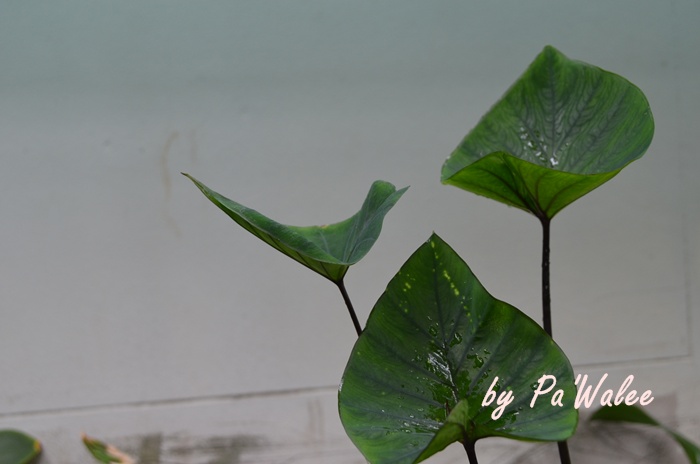 ต้นที่ 3 ก้านดำๆ เส้นใบก็ดำ แต่ต้นโตกว่าสองต้นแรกค่ะ ไม่ทราบว่าจะโตกว่านี้ไม๊