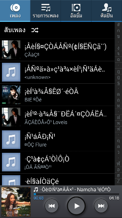 ขอวิธีแก้ปัญหา "รายการเพลง เป็นภาษาต่างด้าว" ของ SAMSUNG Galaxy Grang 2 ครับ