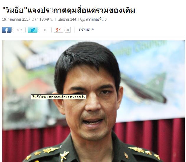 " วินธัย" แจงประกาศคุมสื่อแค่รวมของเดิม....
