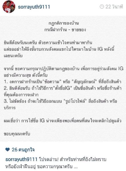 เป็นเรื่องอีกครั้ง เมื่อ นายสรยุทธ สุทัศนะจินดา พิธีกรข่าวชื่อดัง เขียนข้อความผ่าน อินสตาแกรม ในวันนี้ (19 ก.ค.) แสดงความคิดเห็นต่อ กรณีที่สมาชิกที่ติดตาม IG ของตนจำนวนมาก มักเข้ามาเขียนข้อความเพื่อฝากร้าน ซึ่งเป็นศัพท์ในทางโซเชียลฯ หมายถึง กลุ่มสมาชิกที่ทำธุรกิจต่างๆ อาทิ ขายรองเท้า เครื่องประดับ เสื้อผ้า เป็นต้น