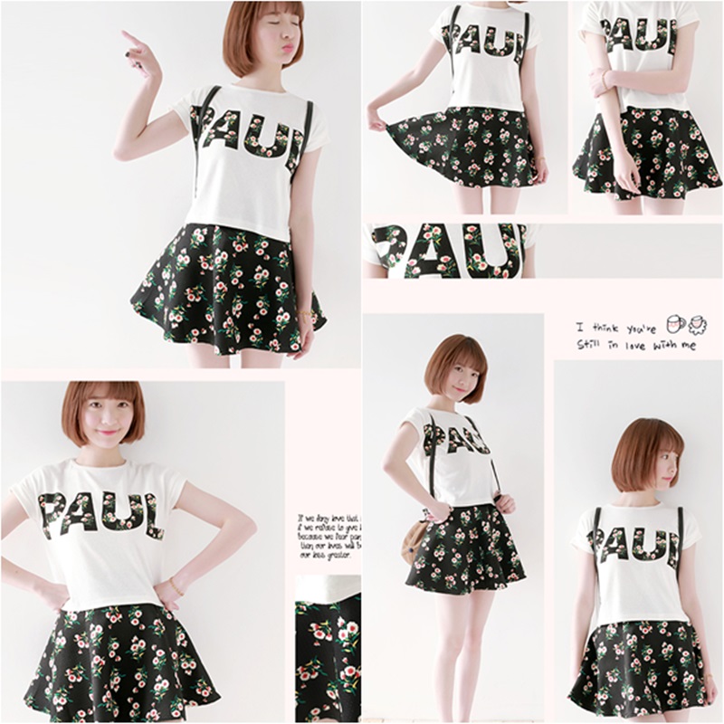ชุด set ลายดอก เสื้อพิมพ์ตัวอักษร paul สวยมากค่ะ