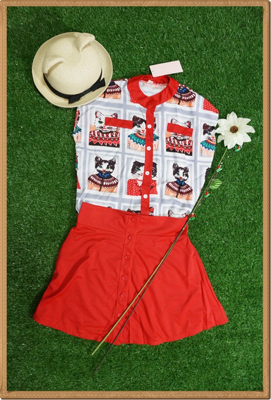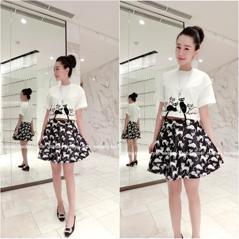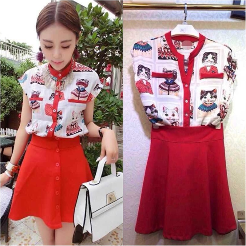 ชุด set เสื้อลายแมวเหมียว+กระโปรงผ้านิ่มลื่นเข้าชุดกัน น่ารักมาก สาวๆรักแมวห้ามพลาดค่ะ