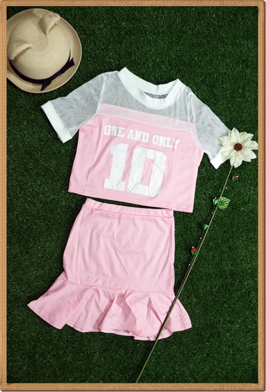 ชุด set หวานๆ สปอร์ต แบบน่ารักมาก ช่วงไหล่ซีทรู ผ้านิ่มลื่น