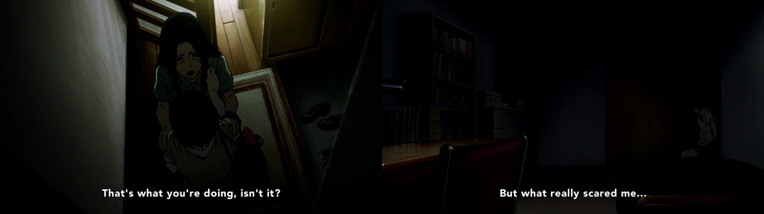 แล้วก็ตัดมาที่บ้านริสะ ที่ที่บ้านมีปัญหา พ่อหนีจากบ้านไป แม่ออกจะเป็นโรคประสาท