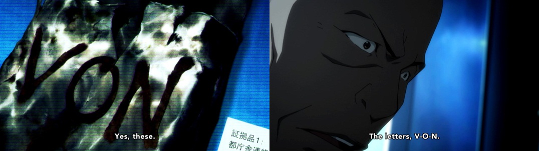 และซาก TNT ที่ใช้ระเบิดทางให้ริสะหนีมาได้ พอประกอบซากกลับ มีอักษร VON อยู่ ทำเอาตำรวจหน้าอึ้งไปเลย