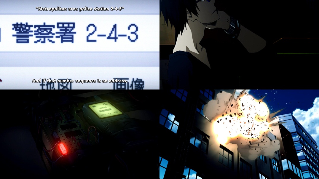 แล้วทางนายแว่น Nine (จำชื่อยังไม่ได้) ก็เดินเกมต่อ เข้าสถานีตำรวจ โดยปลอมเป็นคนส่งราเมง ระหว่างทางเอาตู้ส่งราเมง(ที่มีระเบิดอยู่)ไปวาง ก็แอบติดกล้องไปด้วย (ตรงถังดับเพลิงผมก็งงตั้งนานว่ามันทำอะไร)