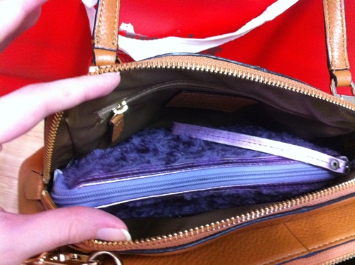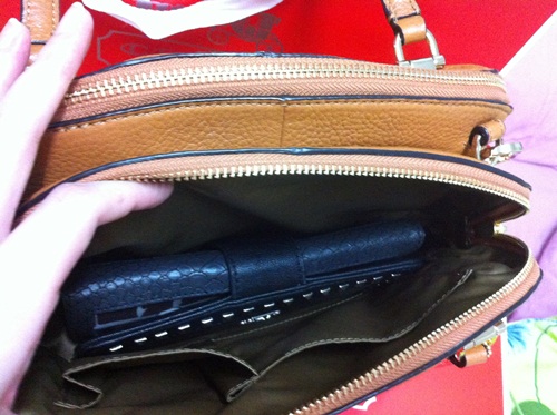 ด้านในค่ะ กระเป๋าอาจจะดูเล็ก แต่ใส่ของได้เยอะพอสมควรค่ะ สำหรับเรานะ เพราะเราไม่ค่อยพกของเยอะเท่าไหร่ค่ะ