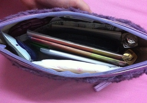 ของในกระเป๋าใบเล็กเราก็มีประมาณนี้ค่ะ ซึ่งกระเป๋านี้จะใส่ของที่เราพกเป็นประจำทุกวัน เราใส่ในกระเป๋าเดียวเพื่อสะดวกในการเปลี่ยนกระเป๋าค่ะ ในนี้ก็จะมี ครีมทามือ สมุดธนาคาร ผ้าเช็ดแว่น ลิปสติกสองแท่ง ยาแก้ปวด กระจกเล็ก กระดาษซับมัน ผ้าอนามัย ซึ่งเราว่าก็เยอะอยู่นะคะ สำหรับเรา ^_^