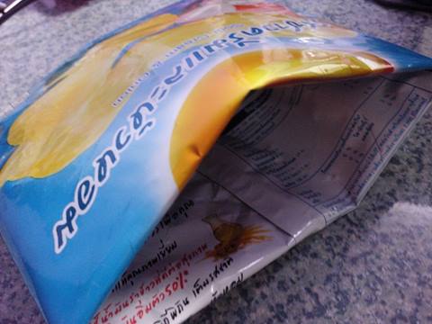 เวลาเรากินขนม ที่เป็นห่มใหญ่ๆ มักจะพับปากห่อเข้าด้านใน