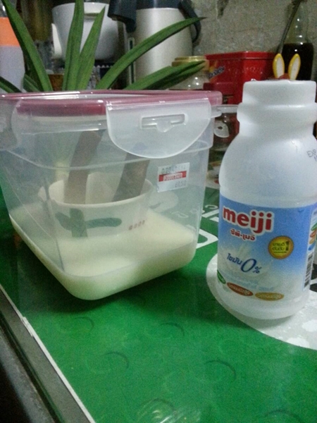 อันดับแรก ผมจะอบนมก่อนให้นมมีความหอม ให้ได้ตามสูตร หอมหวานอย่างไทย ครับ นมผมอบในกล่องตามที่จะหามาได้แล้วแช่ตู้เย็นไว้ 1 คืนครับ