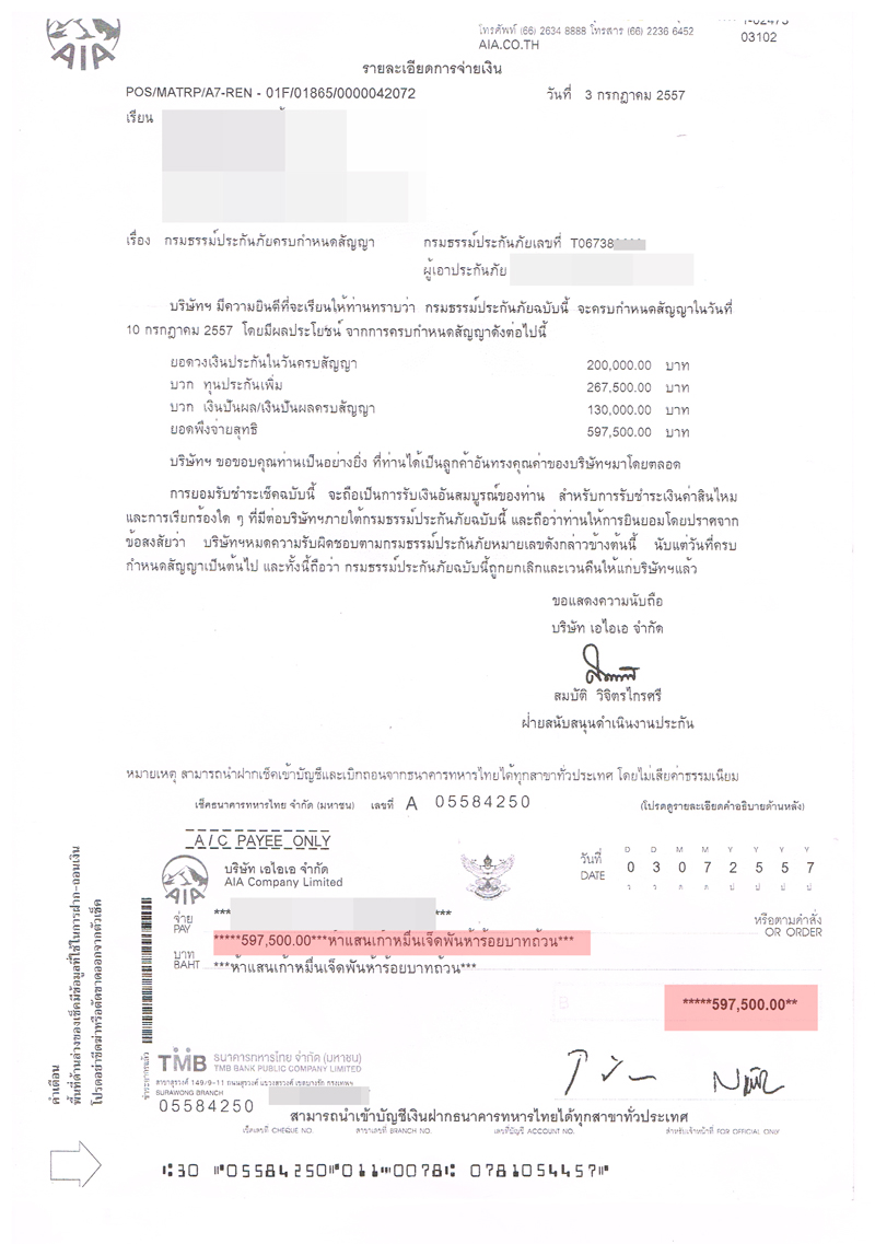 รบกวนขอคำแนะนำ เรื่อง บริษัทประกันภัย AIA จ่ายเงินไม่ครบตามสัญญา