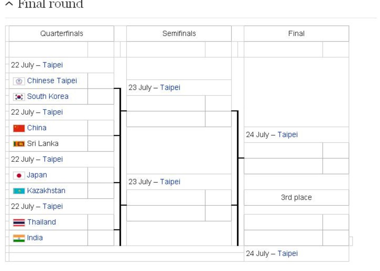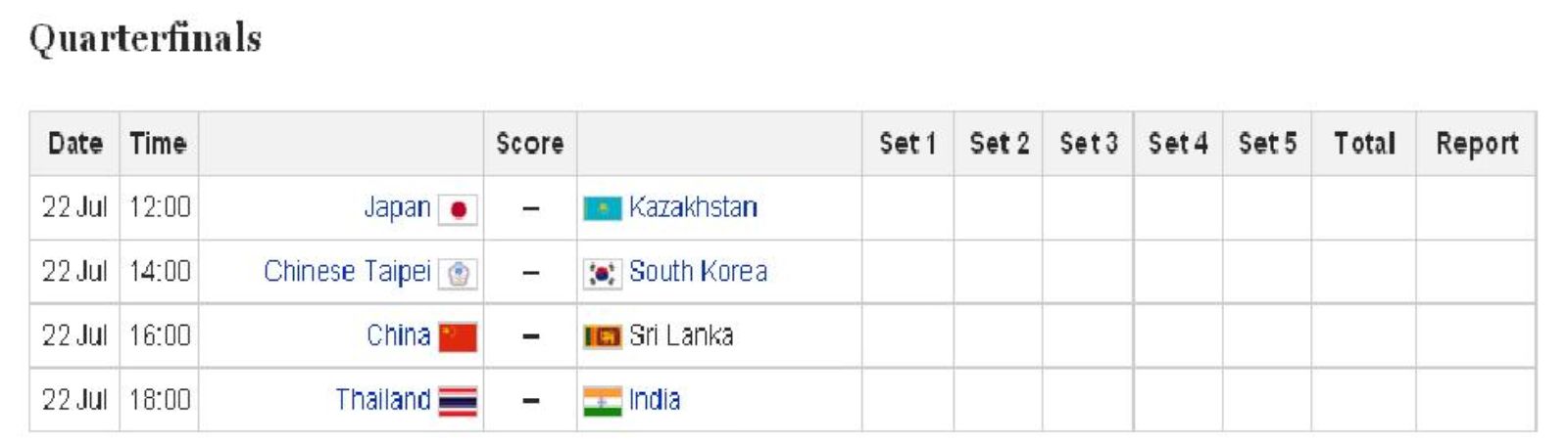 ตารางการแข่งของพรุ่งนี้ออกมาแล้ว เริ่มแข่งคู่แรก 12.00 น. (เวลาไต้หวัน) --- 11.00 น.(เวลาไทย)