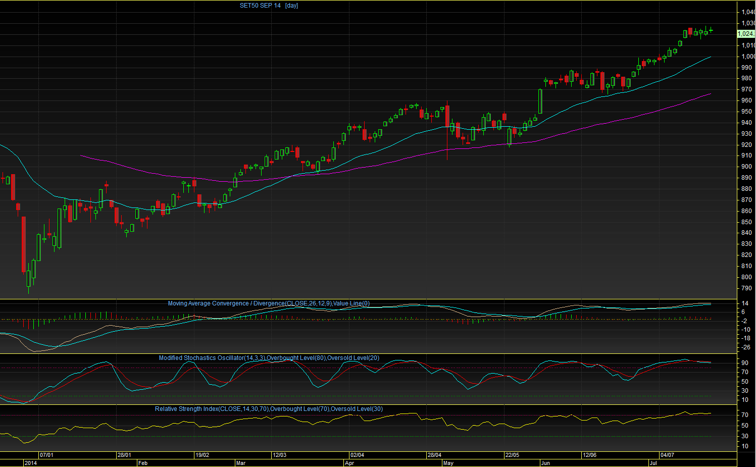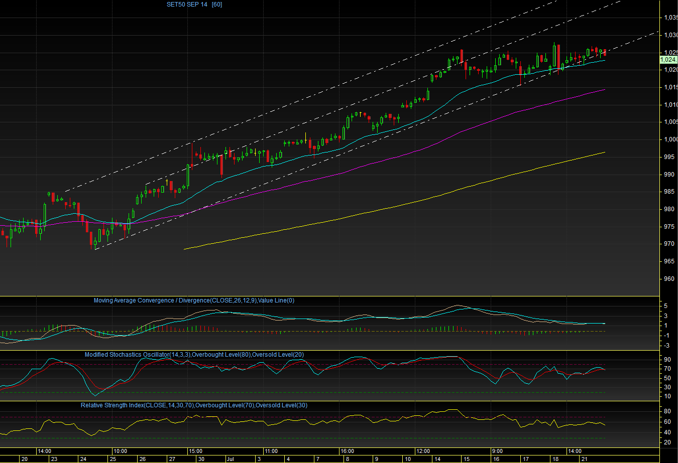 S50U14 TF Day : เมื่อวานนี้แกว่งตัวในกรอบแคบๆ (1021-1026 จุด) และเรียงตัวแท่งเทียน ในรูปฟอร์ม "High Waves"