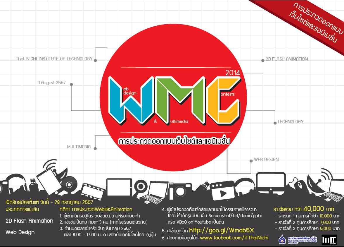 ประชาสัมพันธ์งานประกวดAnimation และเว็บสำหรับนักเรียนระดับชั้นมัธยมปลายครับโดยจัดแข่งเป็นทีม ทีมล่ะ3คนครับ สอบถามข้อมูลได้ที่  www.facbook.com/iTThaiNichi ครับ