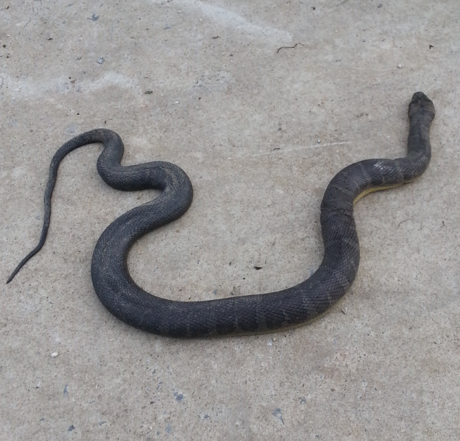 พอดีมีคนข้างบ้านบอกเราชอบเปิดประตูหลังบ้านให้ระวัง เพิ่งเจองูจะเลื้อยจะเข้าบ้านเป็นตัวสีดำ ตัวเท่าแขน เราคิดว่าน่าจะเป็นงูเห่า เพราะ เคยมีลูกงูเห่าเลื้อยเข้าบ้านครั้งนึงแต่โชคดี ตอนนั้นน้องแมวอยู่พอดี