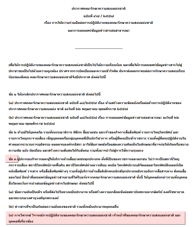เพราะ ประกาศ คสช ฉบับที่ 97/2557 ไม่มี ข้อ ๒ (๓)