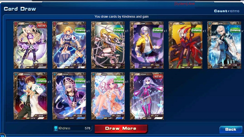 2. kindness ระบบสุ่มการ์ดจากการสะสมแต้ม kindness 2,000 แต้มมาสุ่มการ์ดระดับคอมมอน 10 ใบ ทีเด็ดอยู่ที่การสะสมการ์ดคอมมอนใหม่ๆ และการ์ดที่คุณมีจะสามารถ Enchan เพิ่มระดับเลเวลโดยอัตโนมัติ (ทำให้การ์ดคอมมอนน่าใช้ขึ้นระดับหนึ่ง)