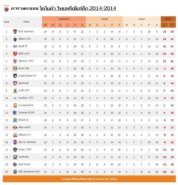ชลบุรี จี้ติดๆห่างกัน 3แต้มทั้งคู่(ทั้งคู่มี47แต้ม)ถ้านัดนี้ไม่ชนะหรือแค่เสมอกดดันแน่นอน ในนัดต่อไป