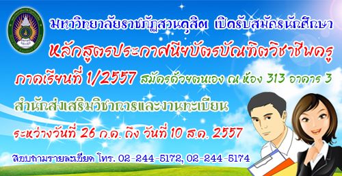 แจ้งข่าวรับสมัคร *** ราชภัฏสวนดุสิต เปิดรับนักศึกษา ป.บัณฑิตวิชาชีพครู ภาคเรียน 1/2557 (ด่วน!!!)